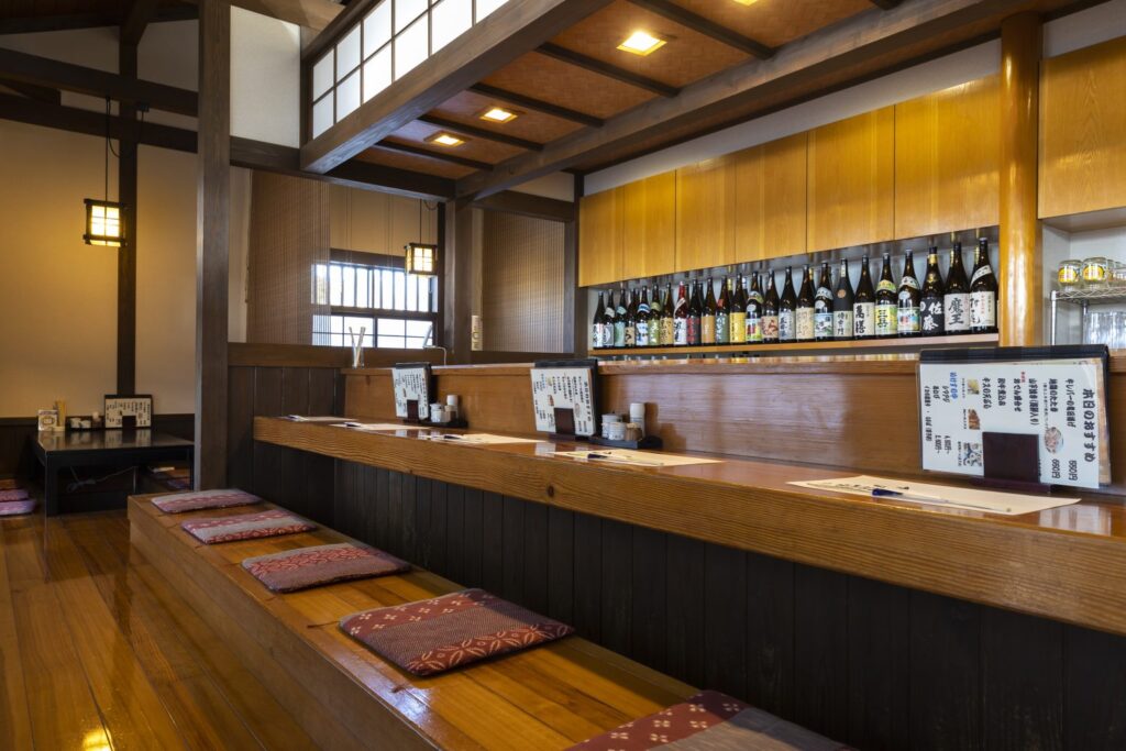 刺身を楽しみたい場合は、事前予約必須。カウンター、座敷、掘りごたつと席のタイプも多く、ひとり飲みからグループ利用まで幅広く対応しています。(紹介者:村田真希 甚六朝市食堂)